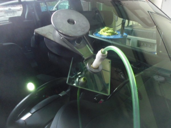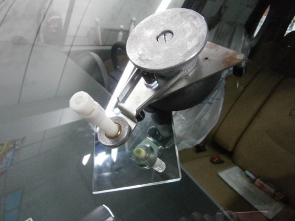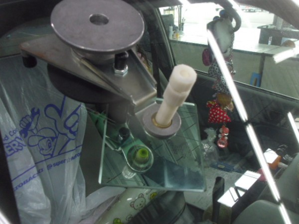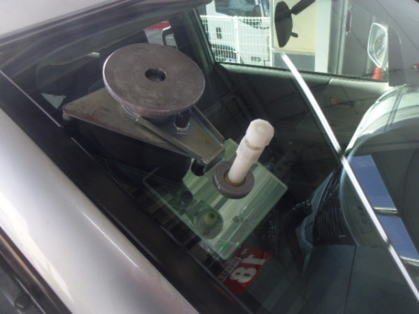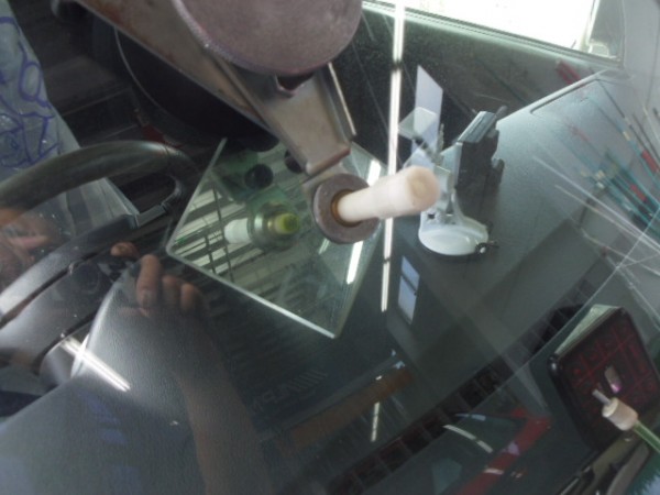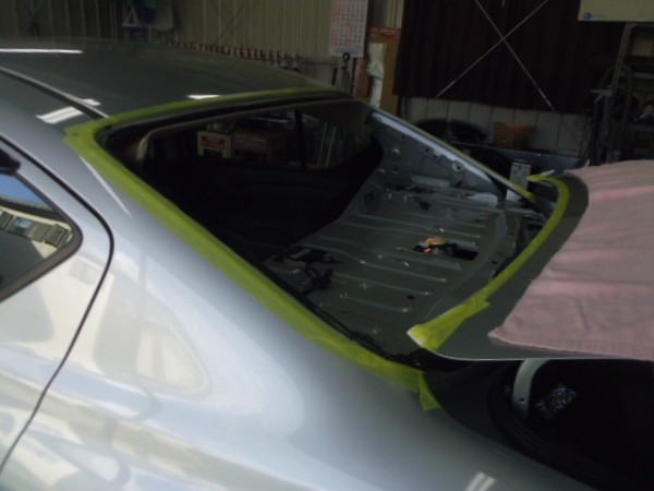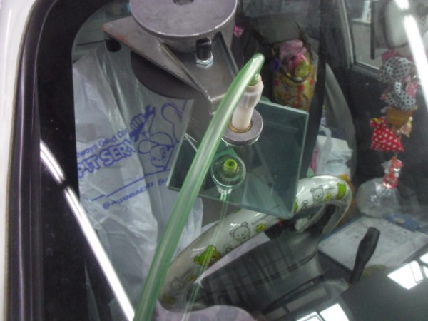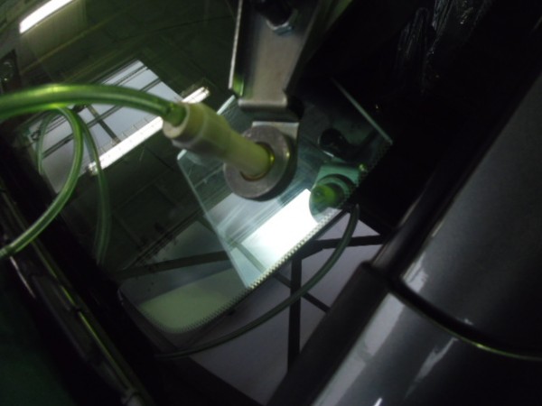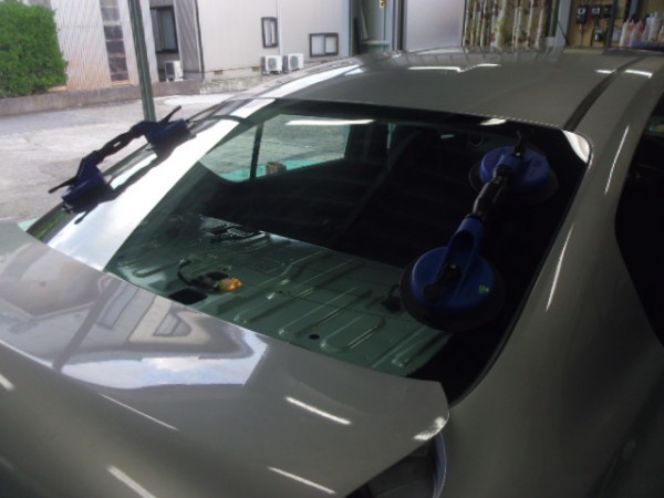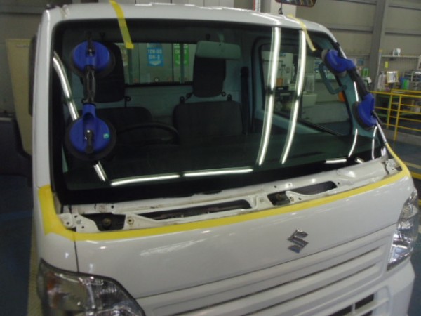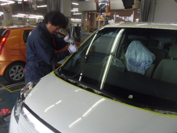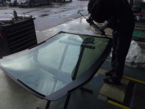 ガラスにシーラントを乗せ、車体側に乗せます