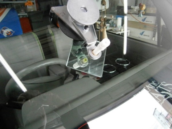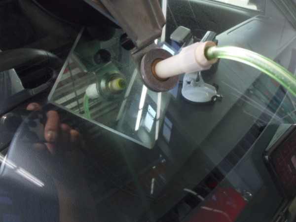 続けてもう1箇所は助手席側上のフィルムアンテナの真ん中