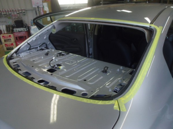 ガラスを車体に乗せて、外した部品を組み立ててチェックします