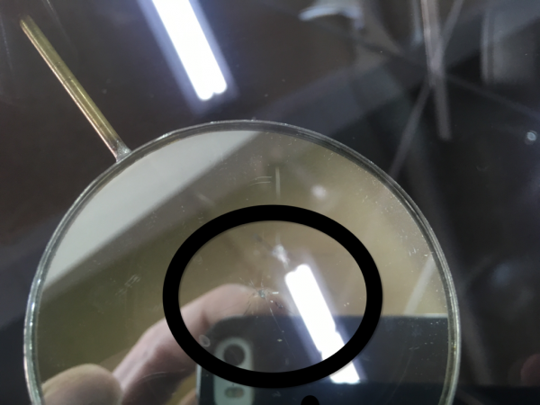 ちょっと分かりにくいですがスターブレイク状のヒビ割れ