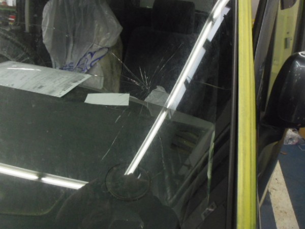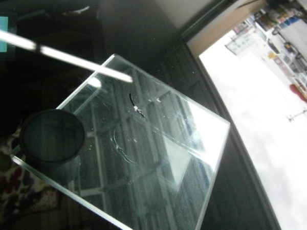 飛び石で割れてました