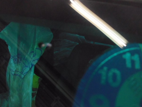 表面の破損ガラスを取り除き、シート類も外して細部まで清掃します