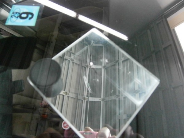 ほぼガラスの中央付近が割れてます