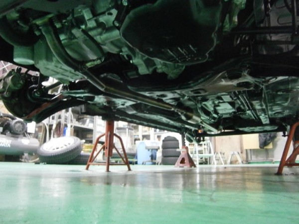 リフトがないのでジャッキアップして左右に分けて寝転んでの作業なので結構大変なんです