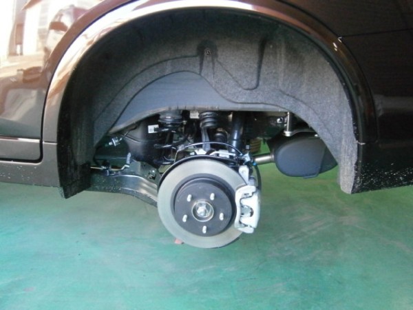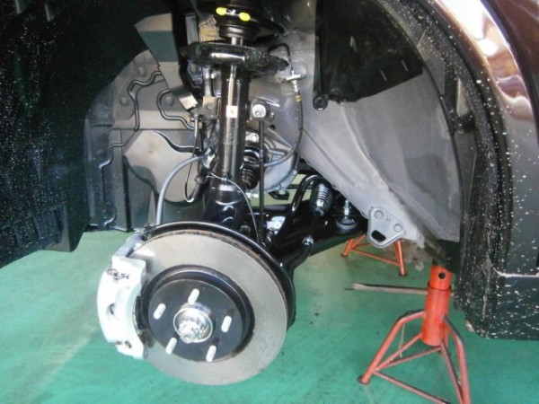 先にホイールを外して下回りのブラック溶剤で錆び止め処理