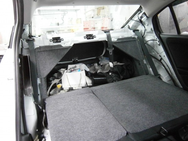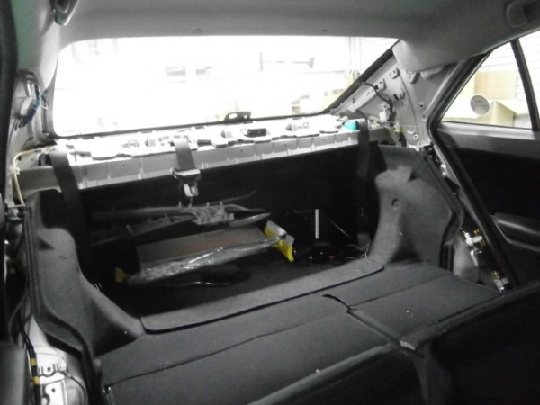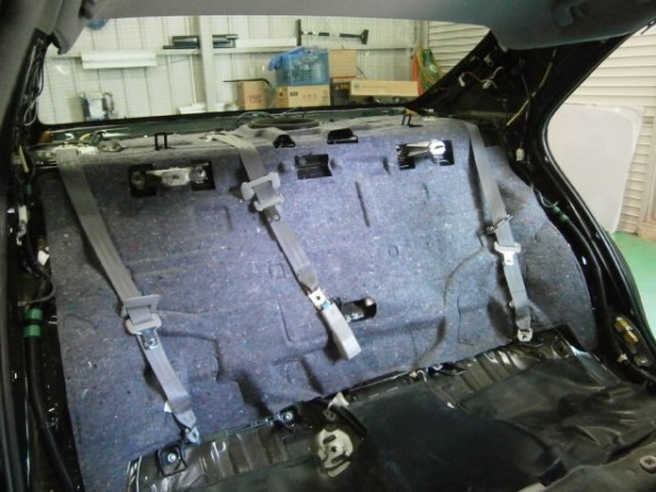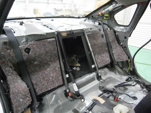 リアから始めますが置き方スピーカーに手こずってしまい、結局外さないでぶら下げて作業する事にしました