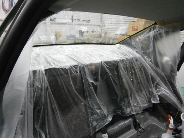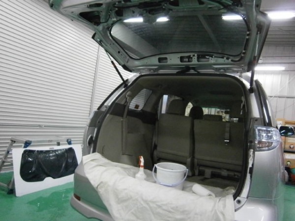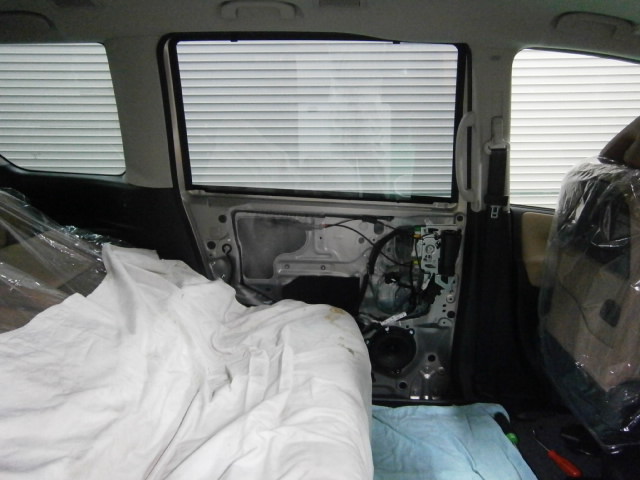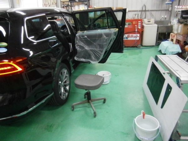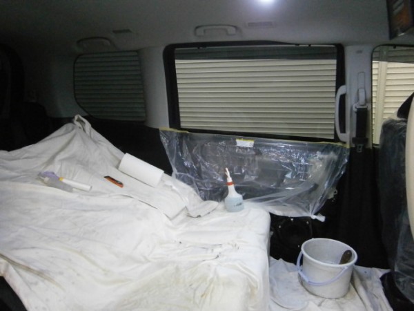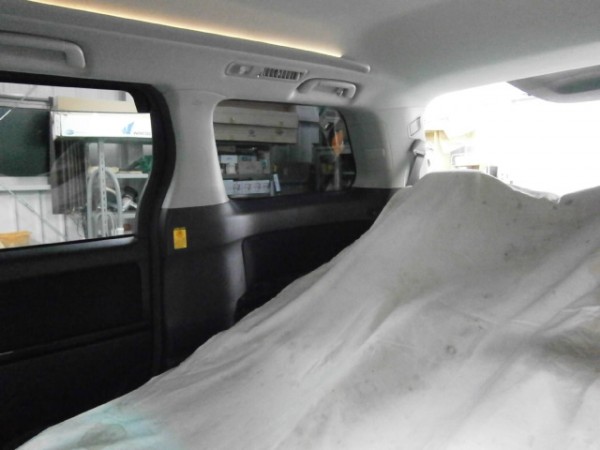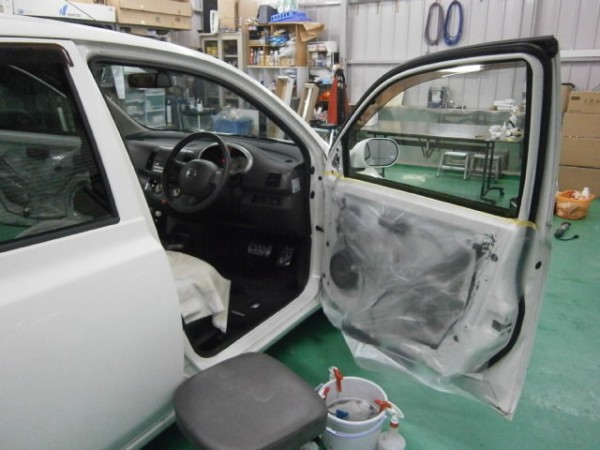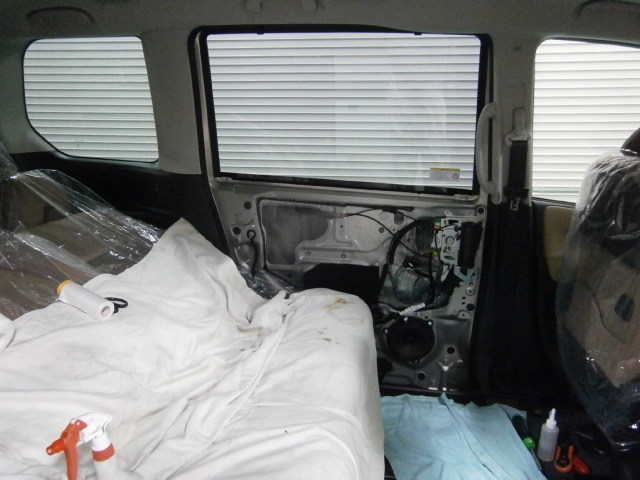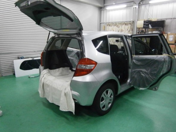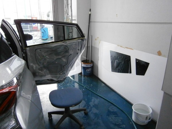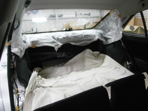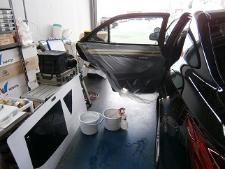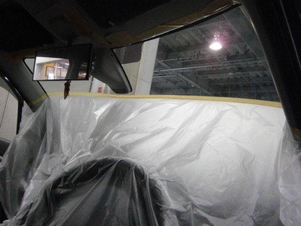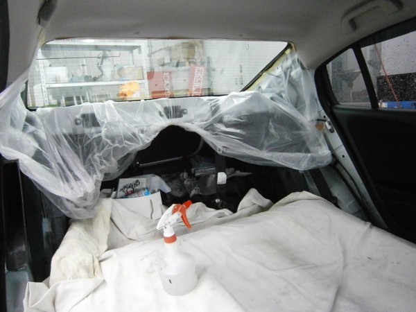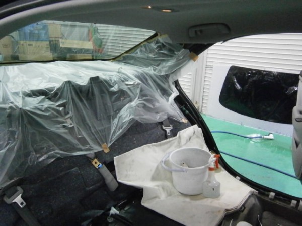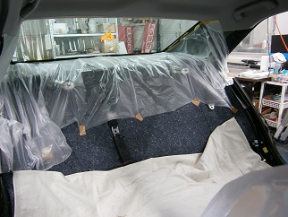 内張りを外してから養生シート、マスキングテープ等で徹底的にお車を保護