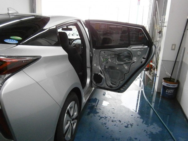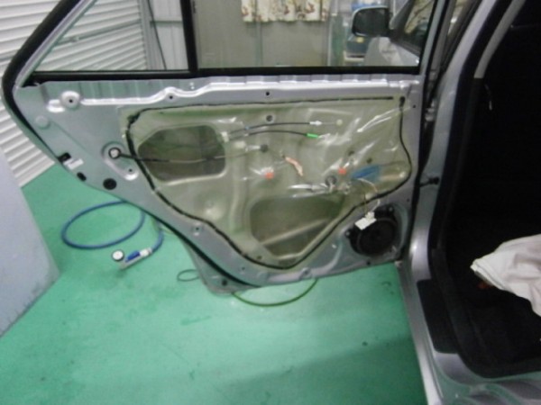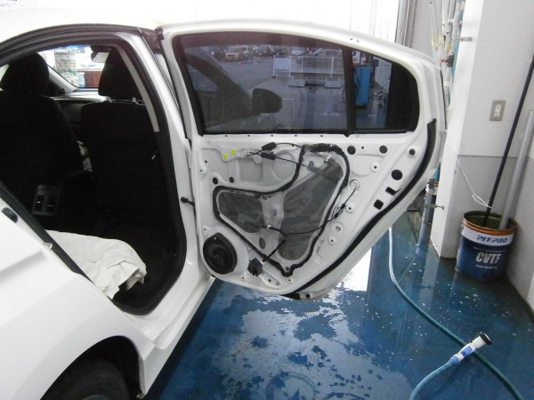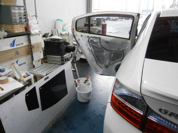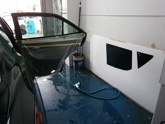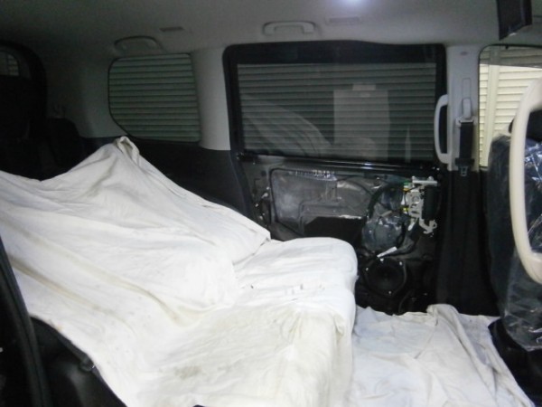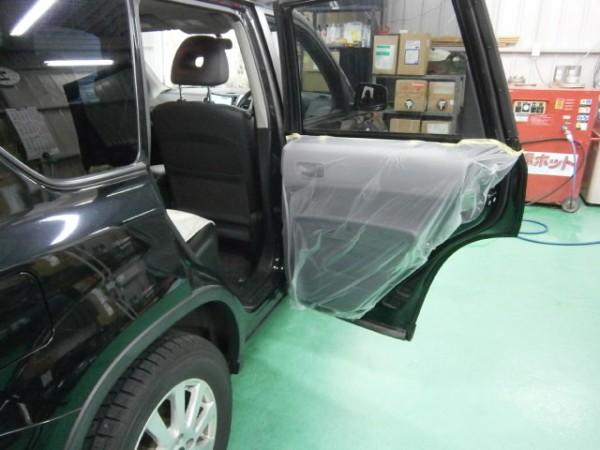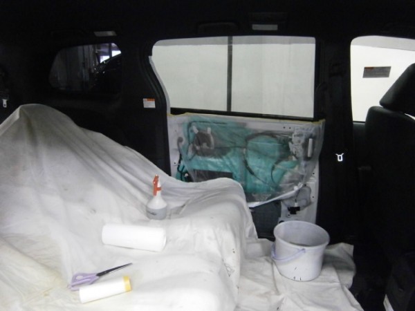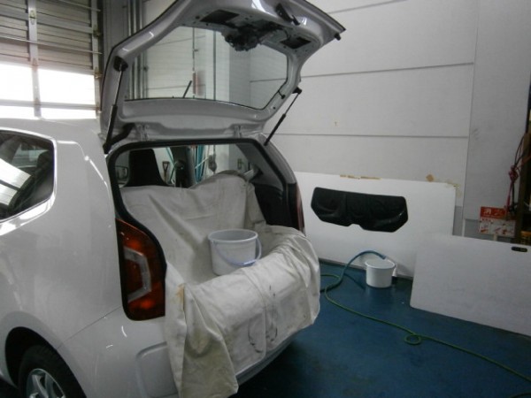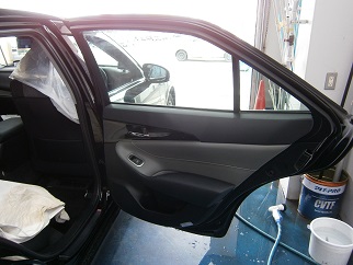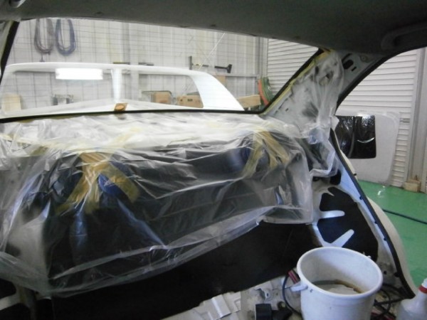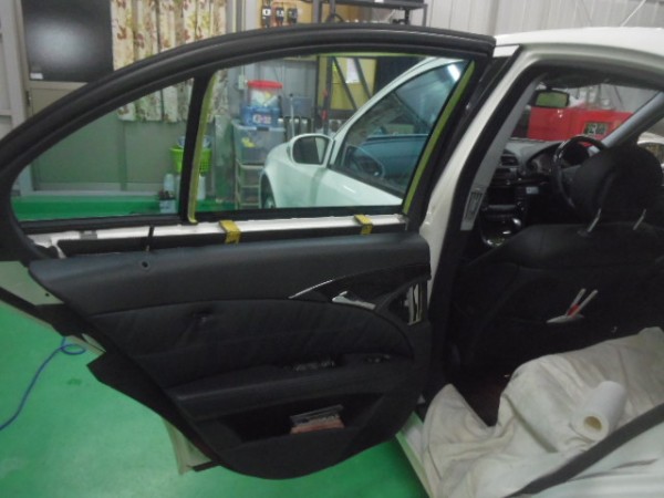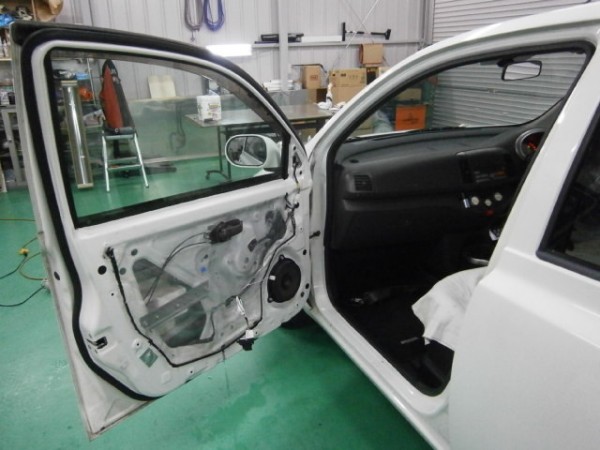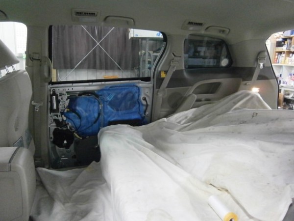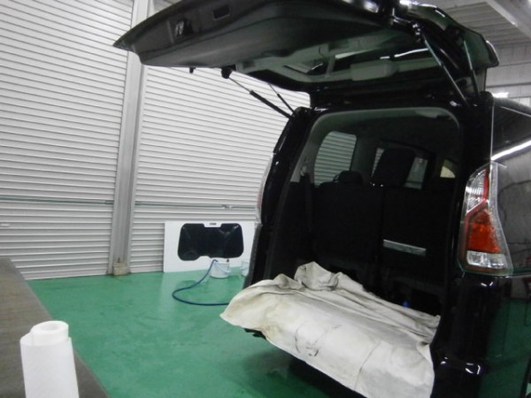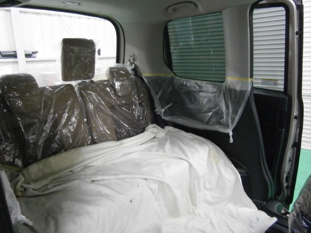 内張りを外してから養生シート、マスキングテープ等で徹底的にお車を保護