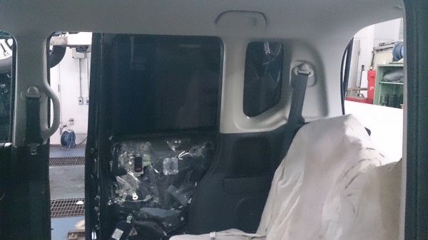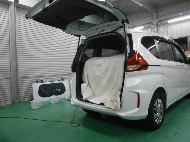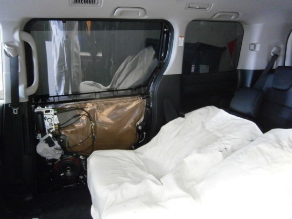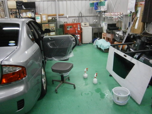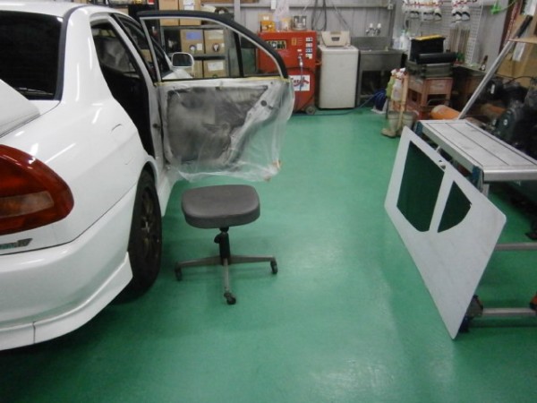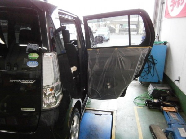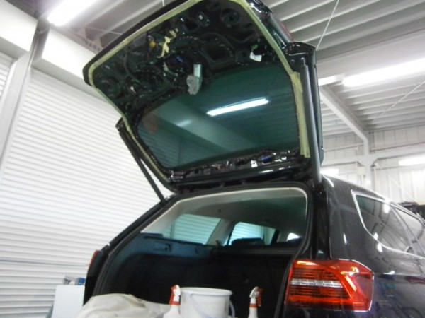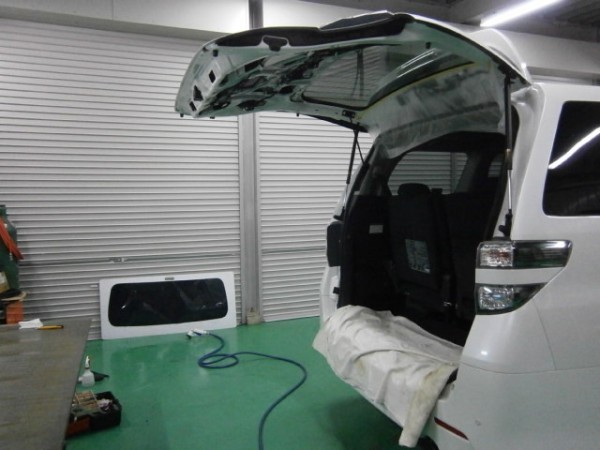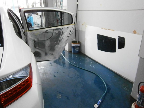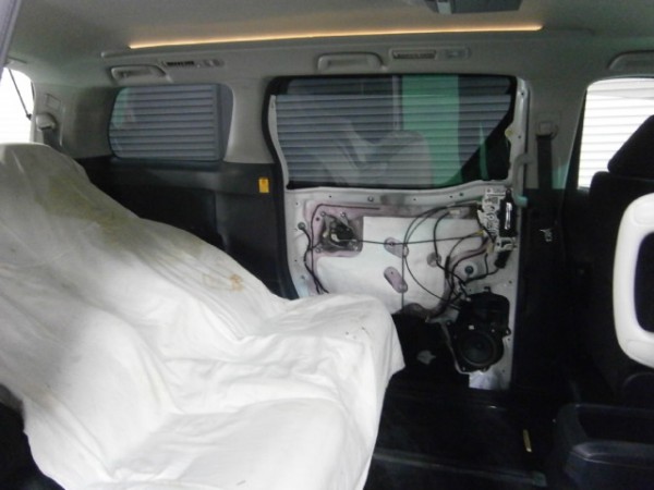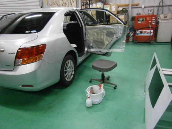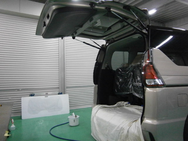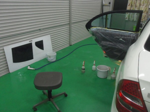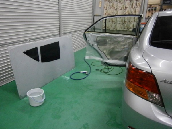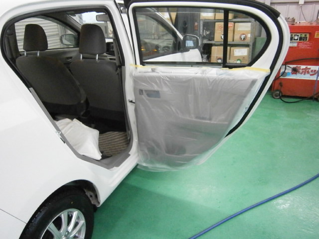 内張りを外してから養生シート、マスキングテープ等で徹底的にお車を保護