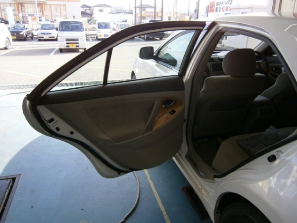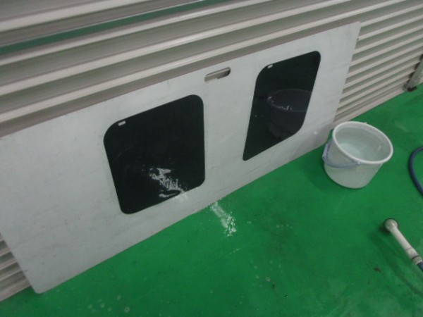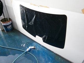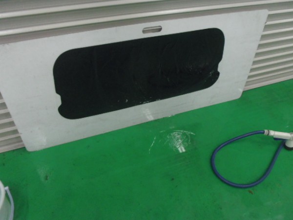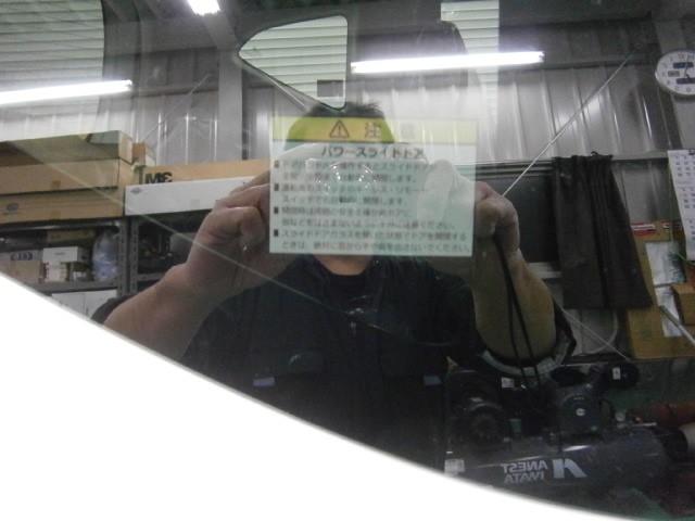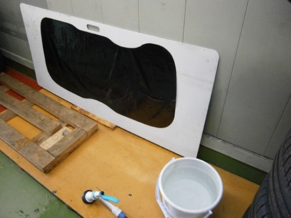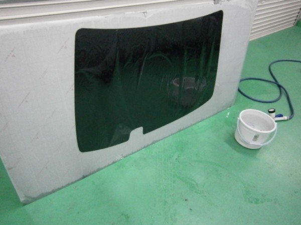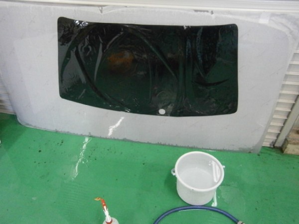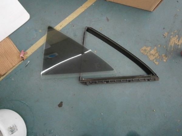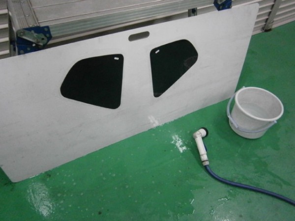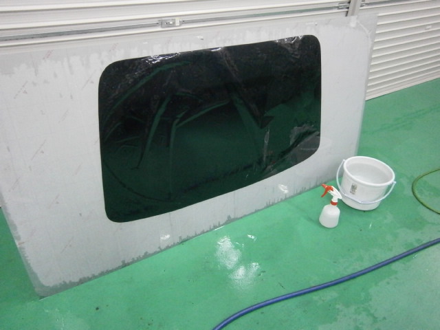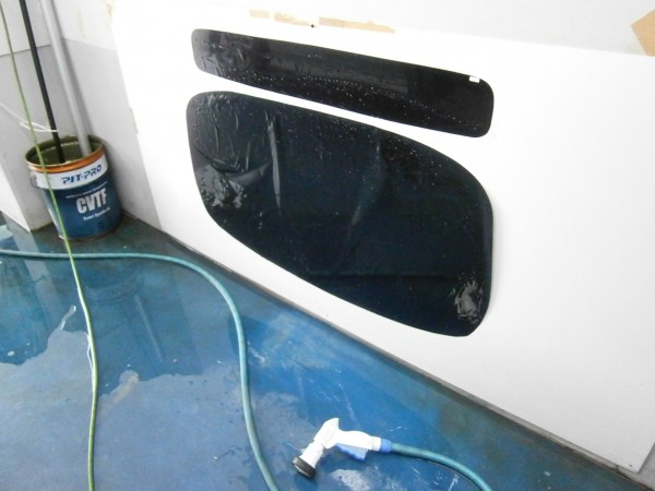 三角窓乾燥後、取り付けてドアガラスにも貼り込みます