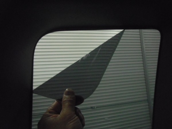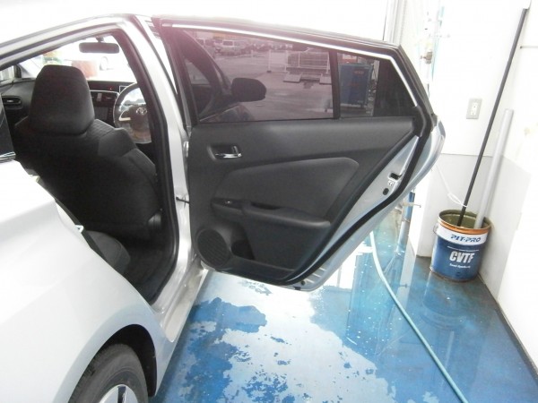 中古車で買われたばかりのお客様で左リアドアの三角窓のフィルムだけ空気が入ってるから貼り変えして欲しいと