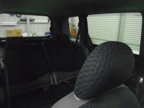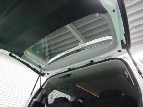 リアには大きめのハイマウントストップランプ、サイドドアガラスはプライバシーガラスで薄く着色されてます