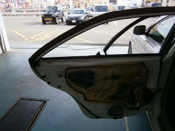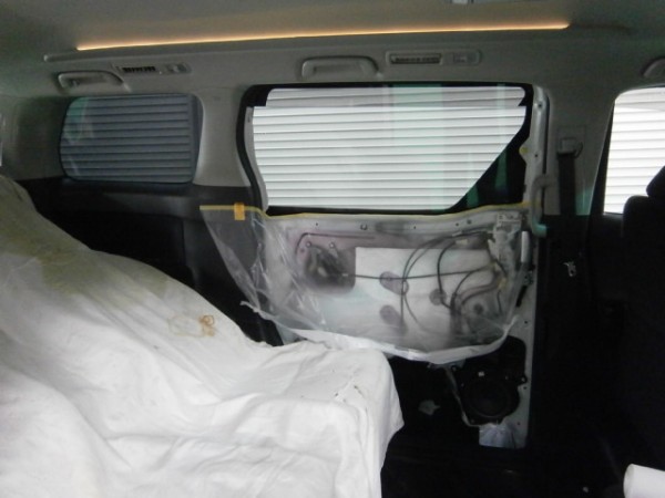 ドアガラス2枚を貼り変えるので、まずは内張りを外して準備します