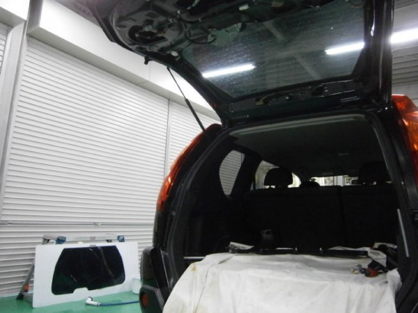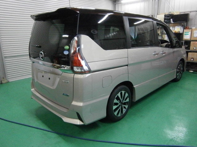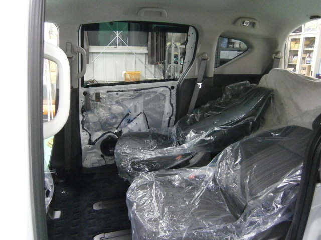 急遽、業者さんから入庫してきたセレナにリア全面」断熱16%のフィルムを貼ります