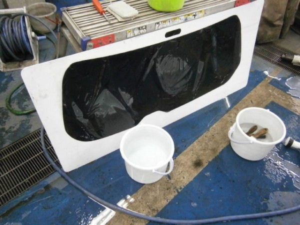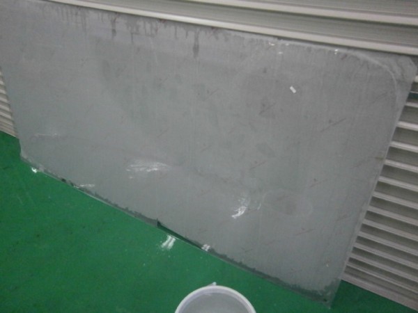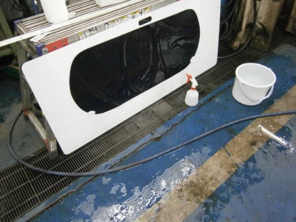 予想通り、糊が全体に残りガラスが真っ白になって糊落しが大変でしたが何とか剥離終了
