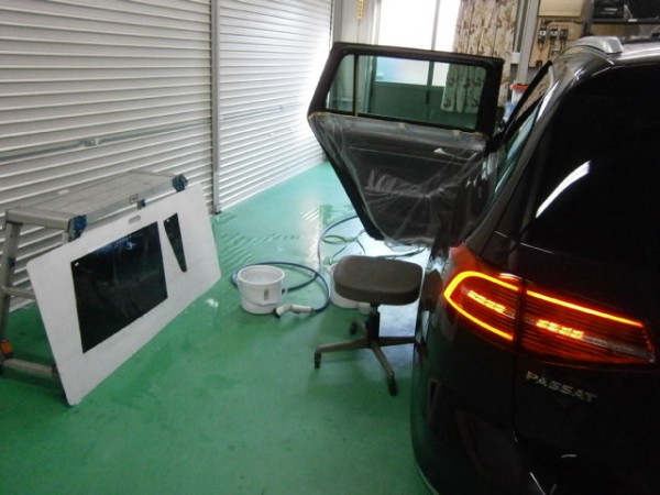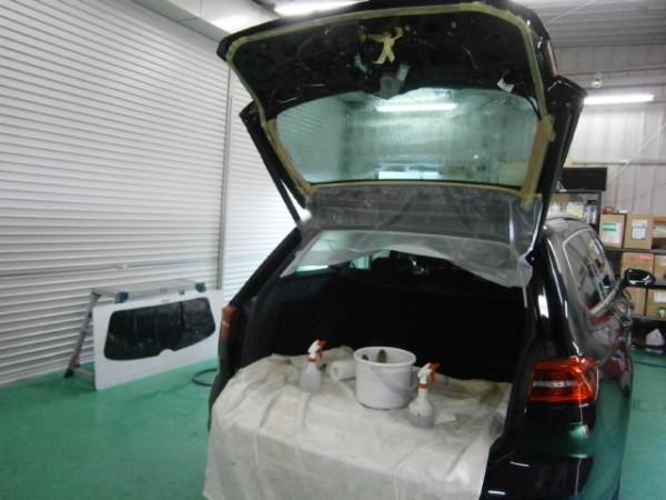 事故でリアゲート交換してプライバシーガラスだけでは薄く、断熱5%のフィルムを貼る事になりました