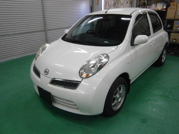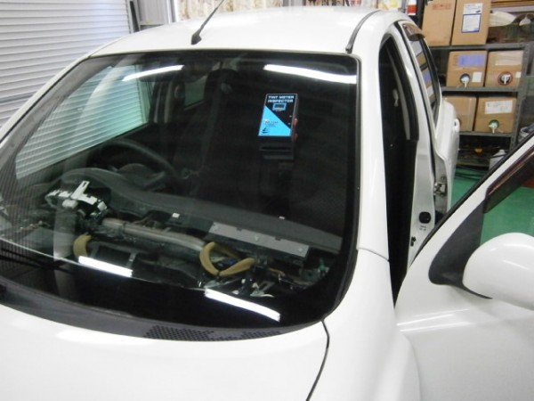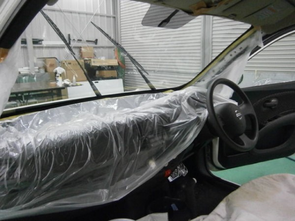 マーチのフロント3面に透明断熱フィルムを貼ります