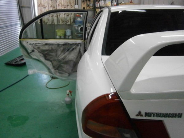 平成8年式のランエボにリア全面スタンダード5%のフィルムを貼ります