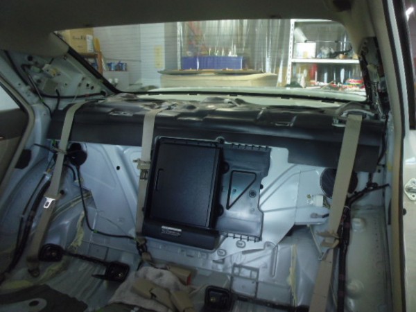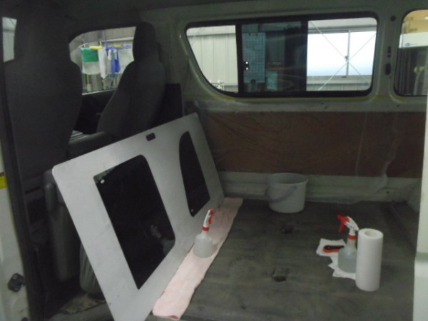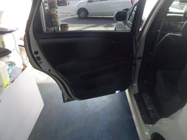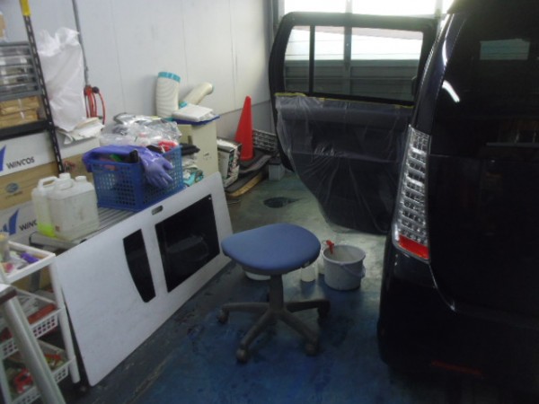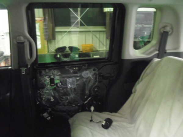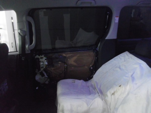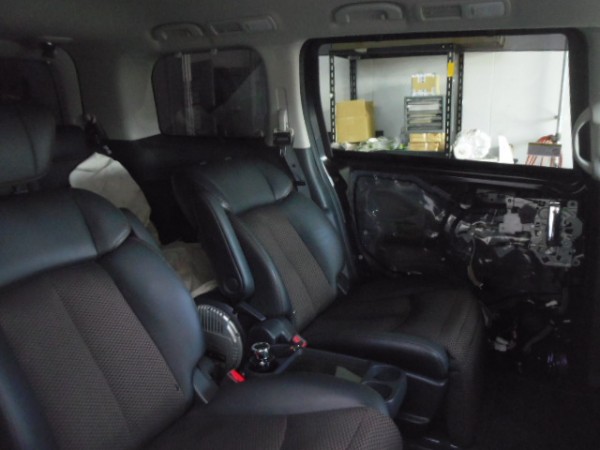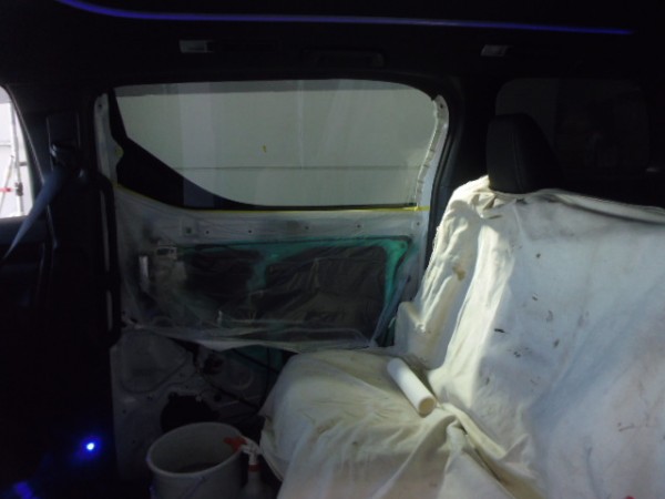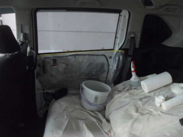 リアクォーターも貼り終え、スライドドアの内張りも外します