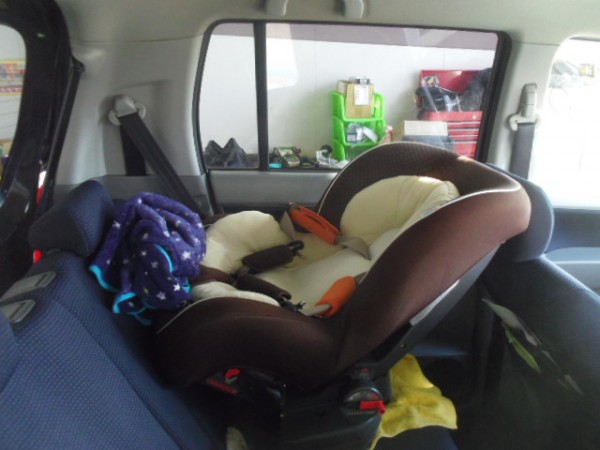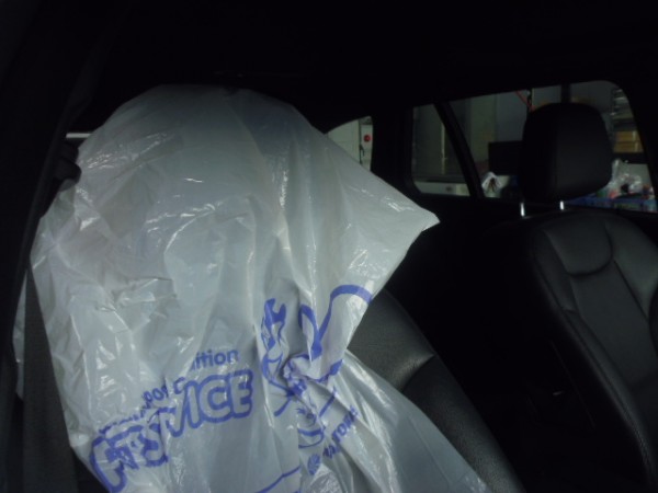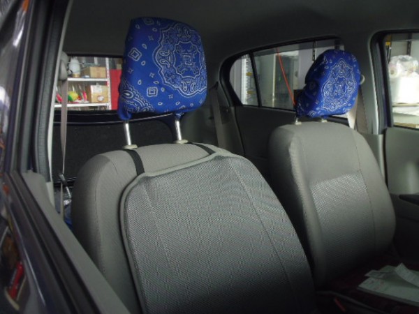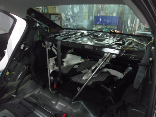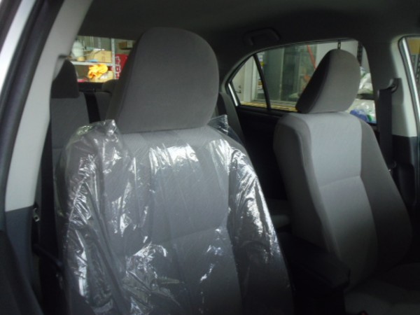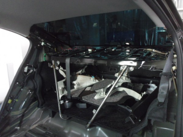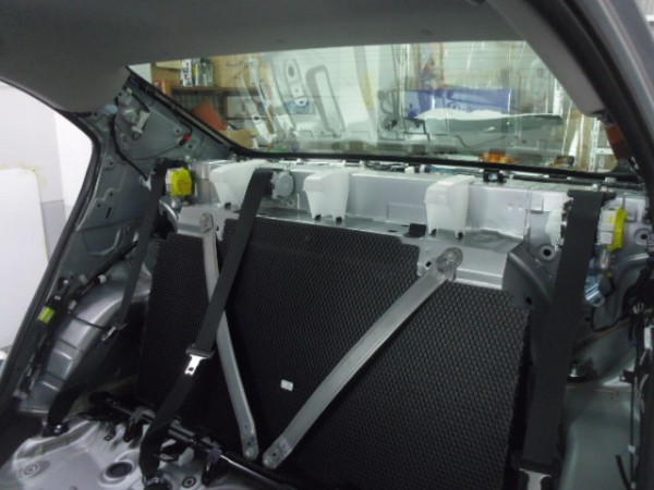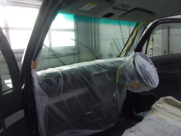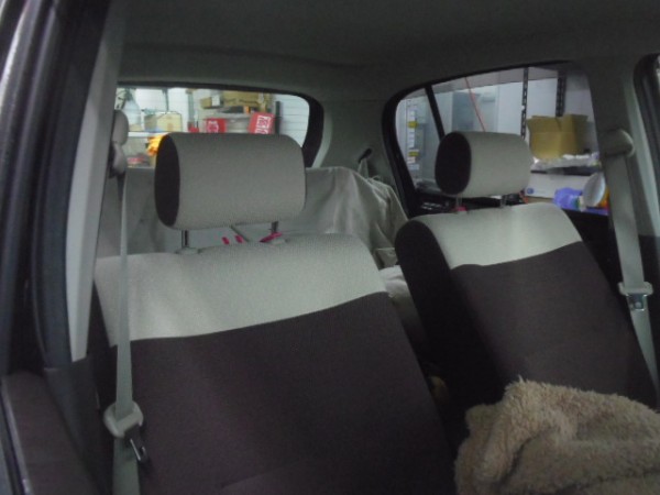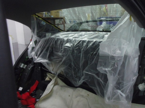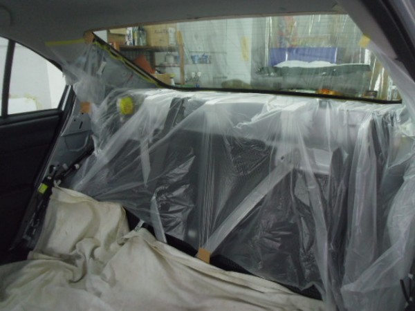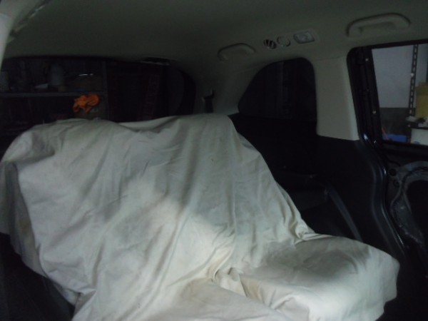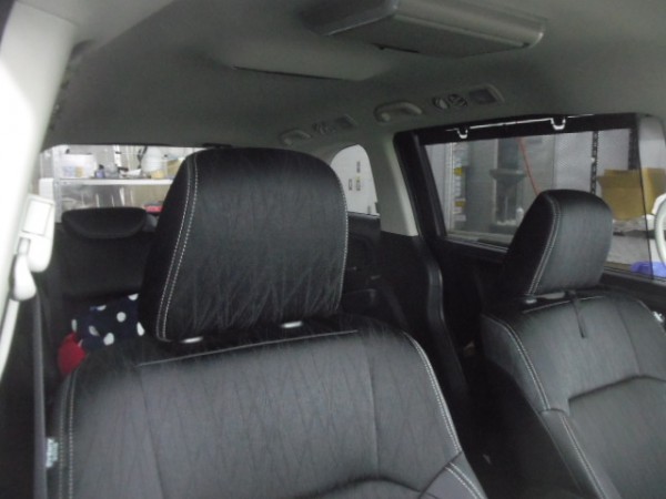 後ろにチャイルドシートが乗せてあるのでお子さんの為に断熱5%のフィルムを貼ります