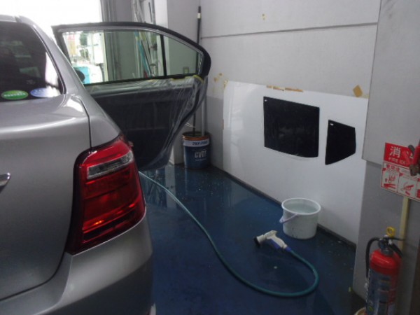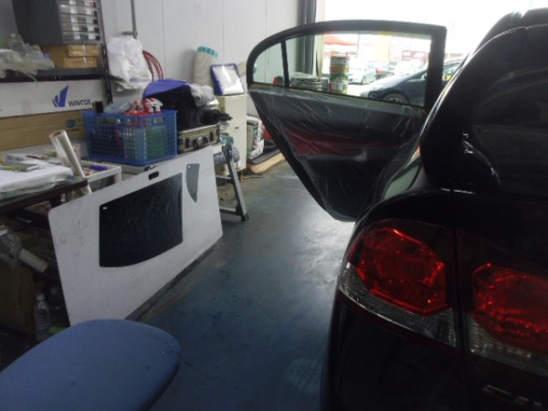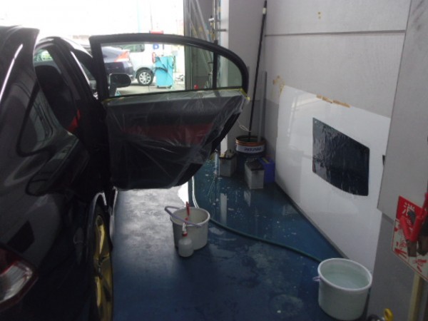 リアハッチ、クォーターは貼ってありましたのでドアのみの貼り込みです
