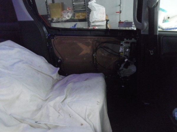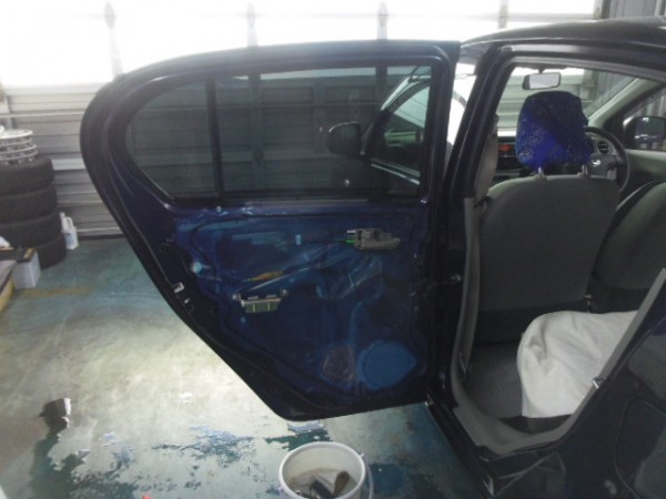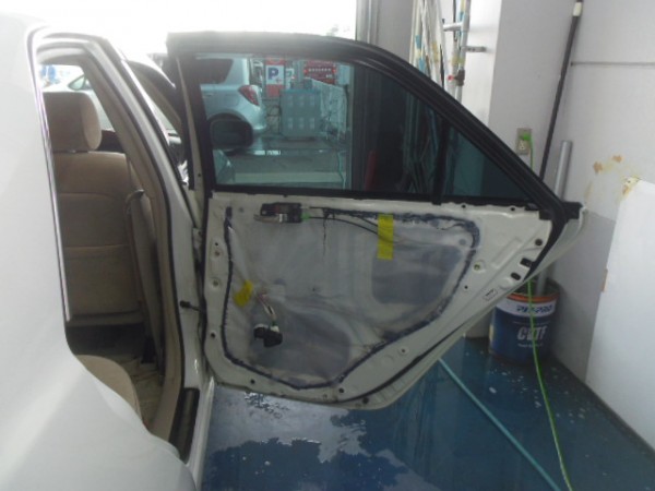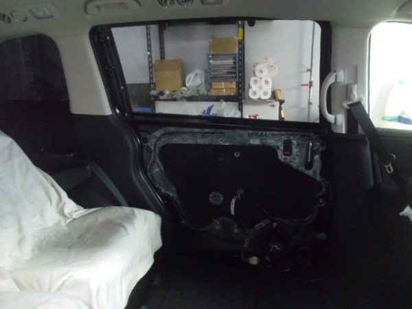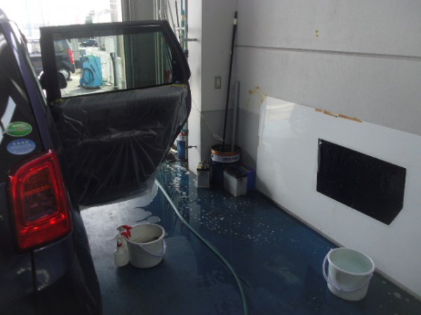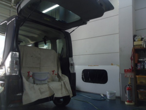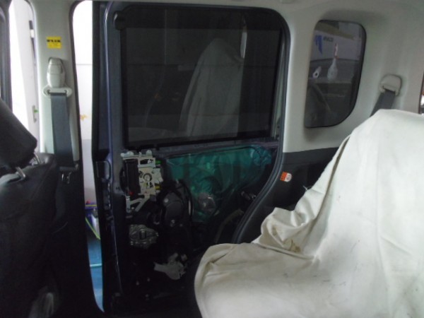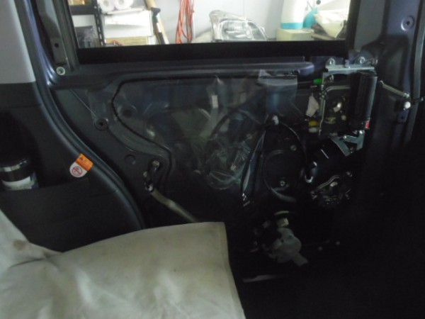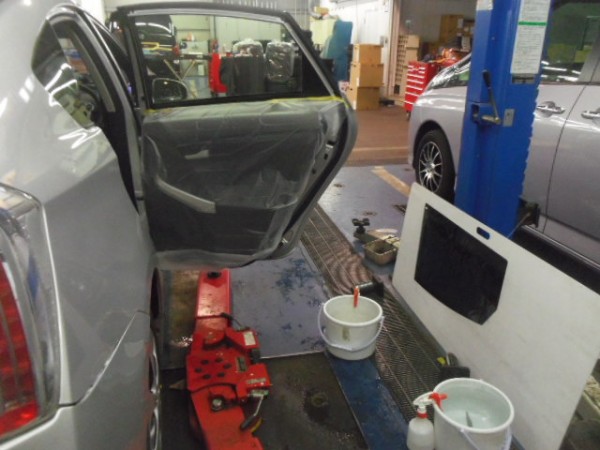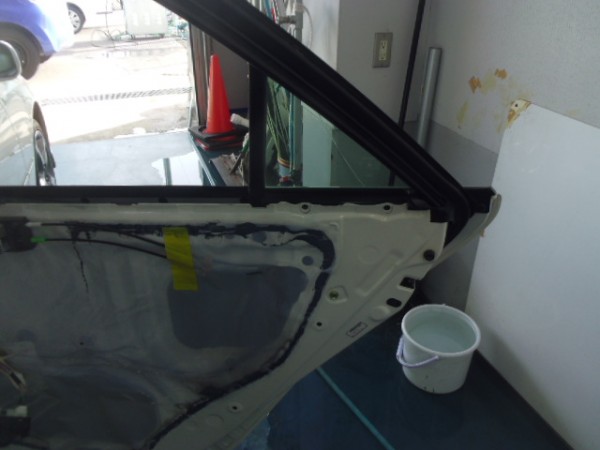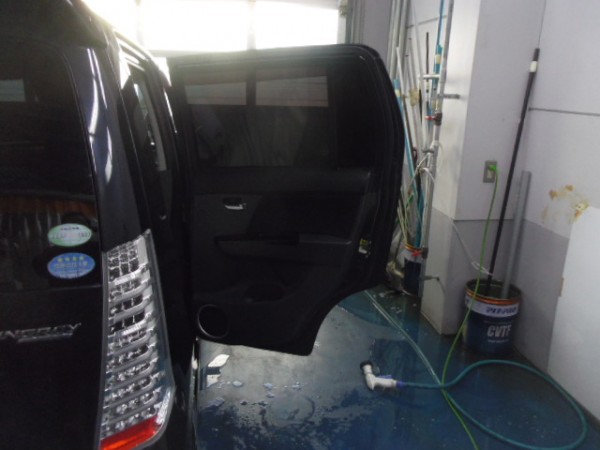スライドドアは内張りを外し、シッカリ水を抜きます