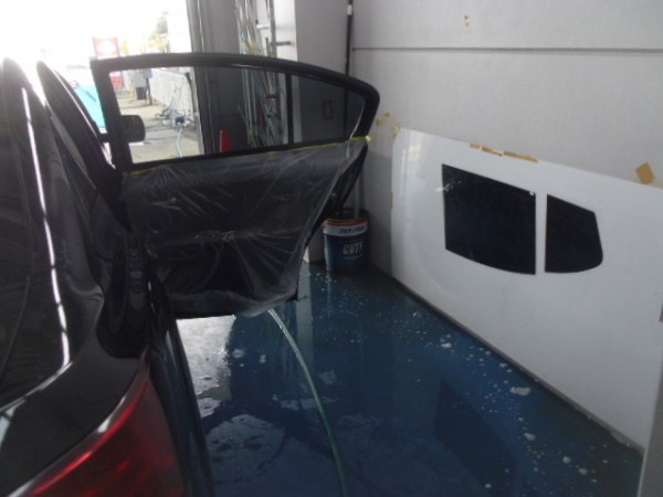 プライバシーガラスに断熱5%のフィルムを貼ります