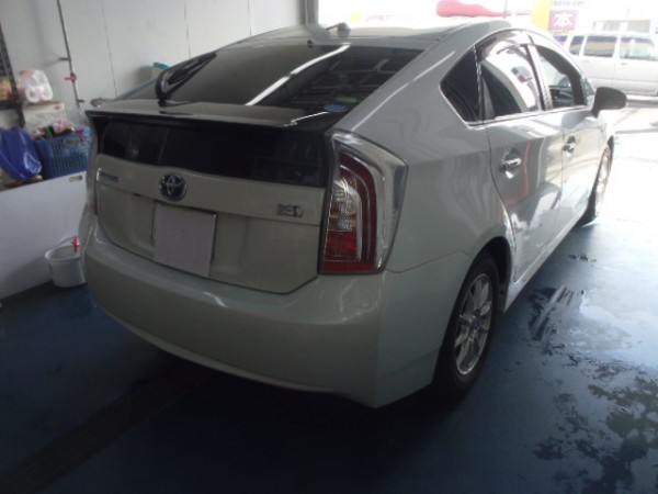 プリウスのリア全面に断熱5%のフィルムを貼ります