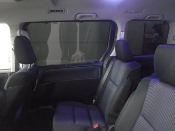 プライバシーガラスでシートも黒でそんなに透けて車内が見えることは無いのですが、快適性を考えると透過率5%がイイとお客様