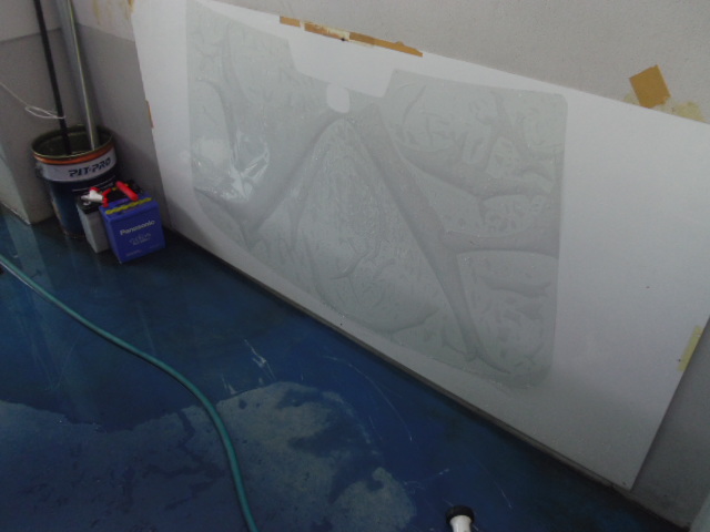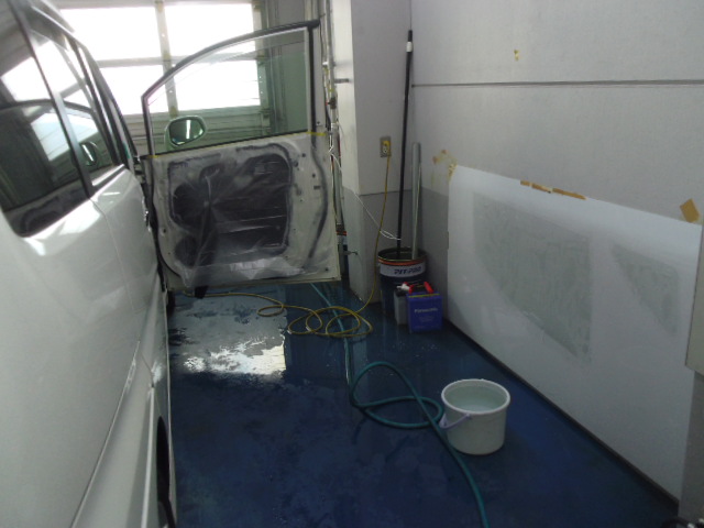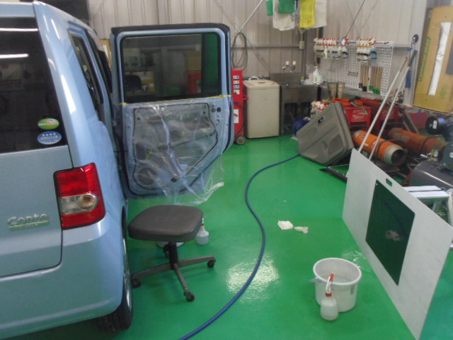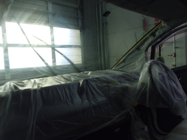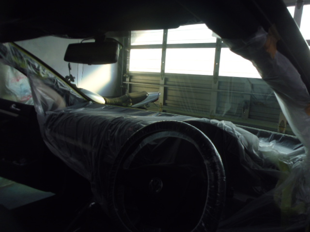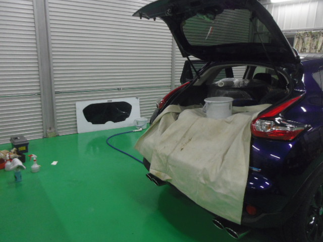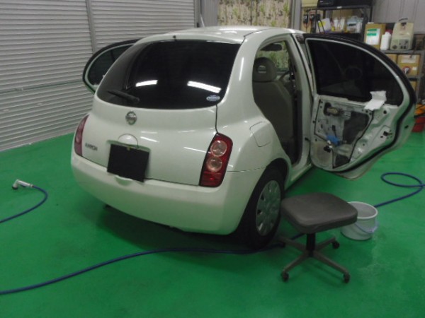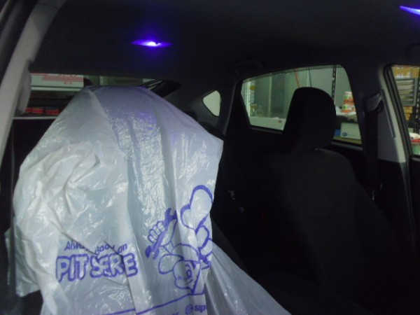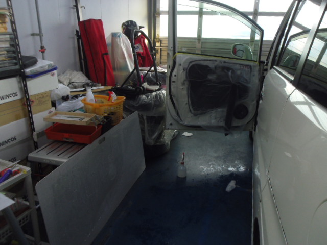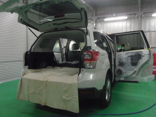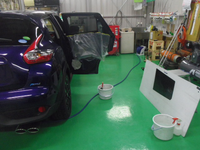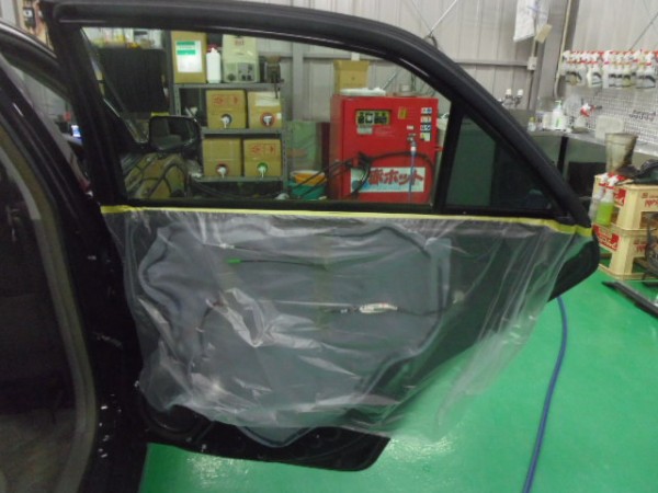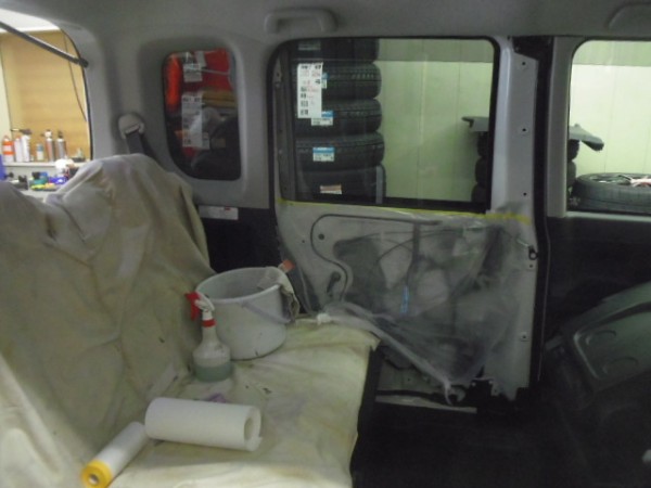 次に内装を施工液で濡らさない様にしっかりと養生します