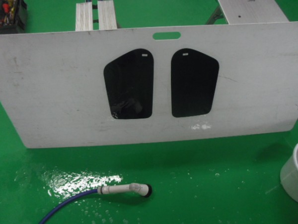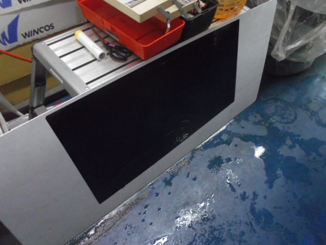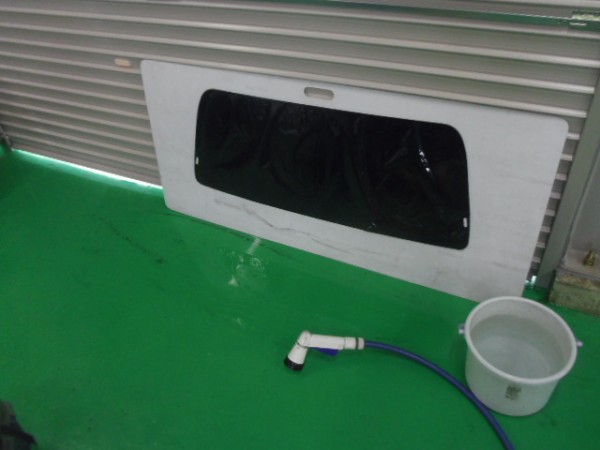 ガラス下のセラミック部分の幅が広く、水が完全に抜けないので明日までペーパーを入れて吸わせておき、TVアンテナを貼ってお返しいたします