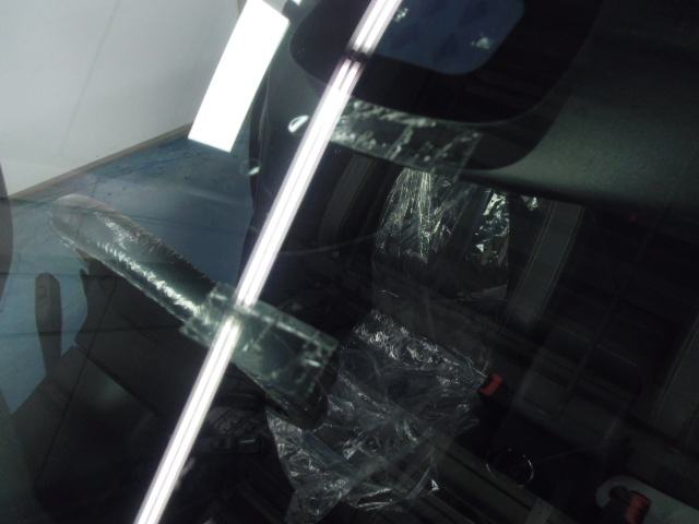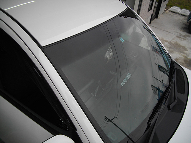 車検に出してフロントガラスの透明断熱フィルムをステッカーを剥ぐ際に切られてしまい、貼り変えのご依頼です
