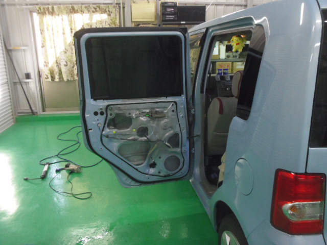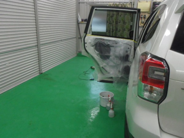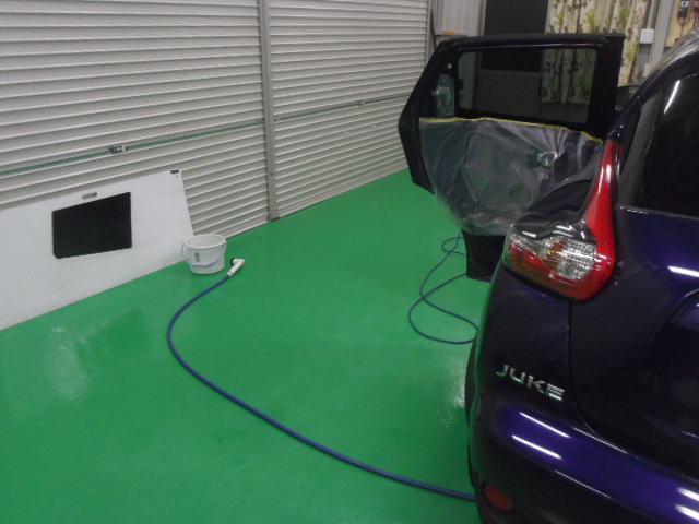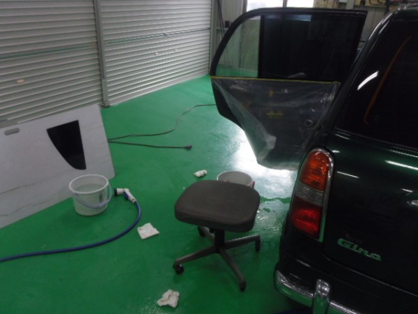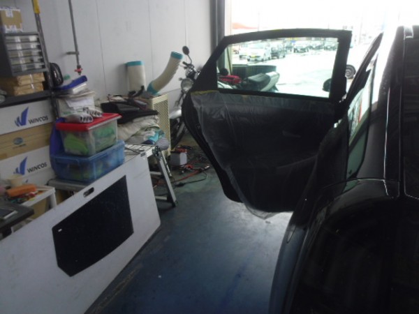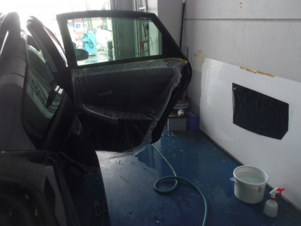 フロントと上部ガラス以外全面にスタンダード15%のフィルムを貼って行きます