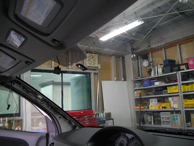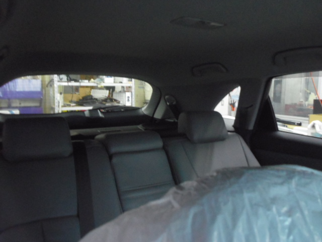夜間、後ろのヘッドライトが眩しいのとご自身の後ろ姿、特に耳の裏が見えるのを無くしたいとご依頼を頂き、断熱5%のフィルムを貼る事に決定