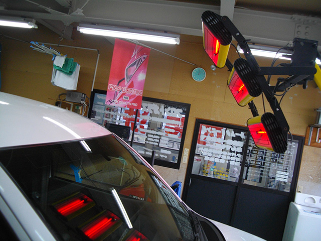 貼り込み後、遠赤外線乾燥機でフィルムを乾かします。寒いこの時期は欠かせません。