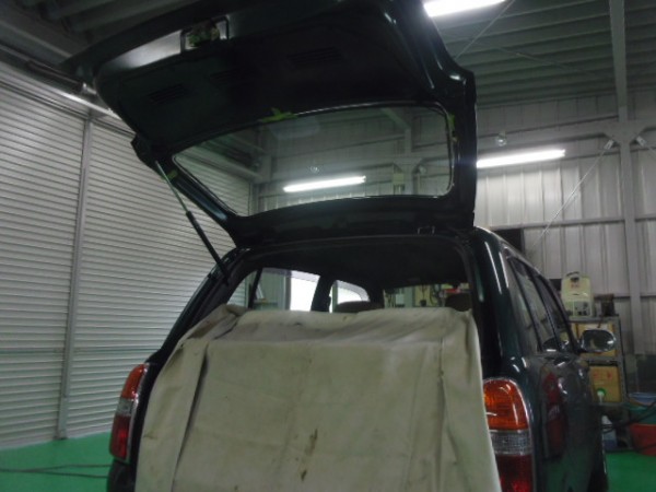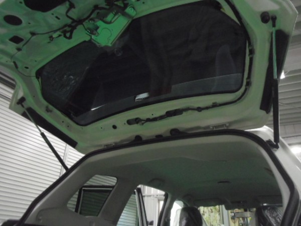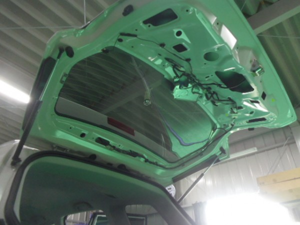 まずはリアハッチから準備します。貼り込みに支障となる部品を外します