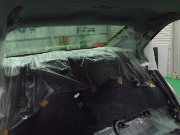 リアハッチ1面のみ、断熱5%フィルムを貼ります