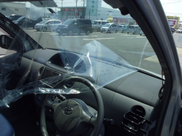 最初にフロントガラスから貼って行きます