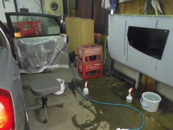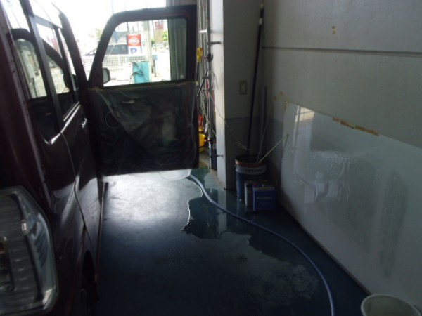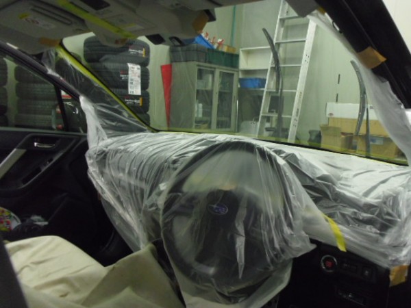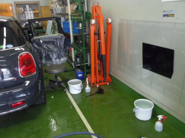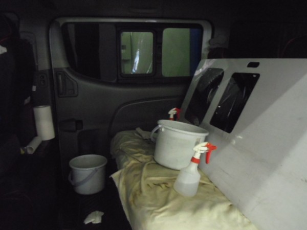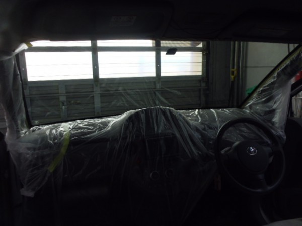 車内の養生もシッカリと行い、電装類に水がかかるのを防ぎます