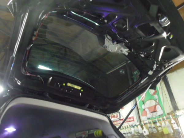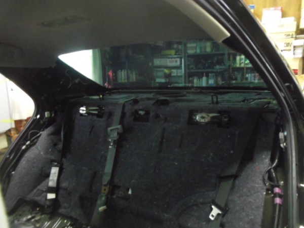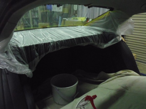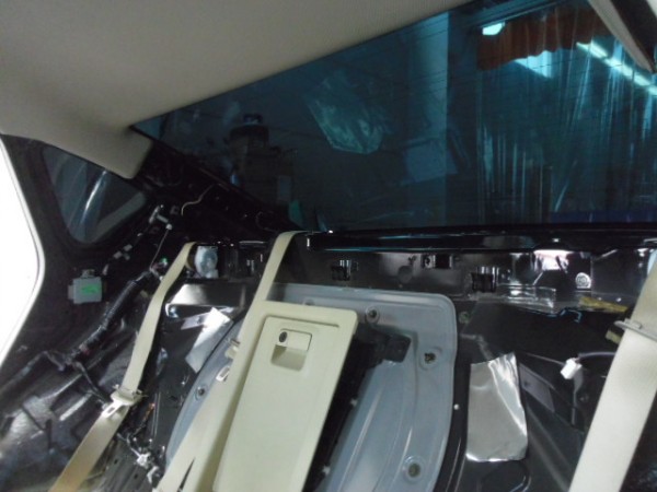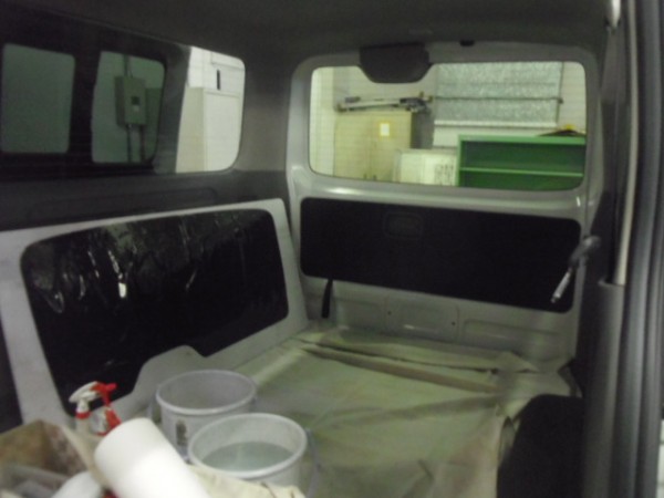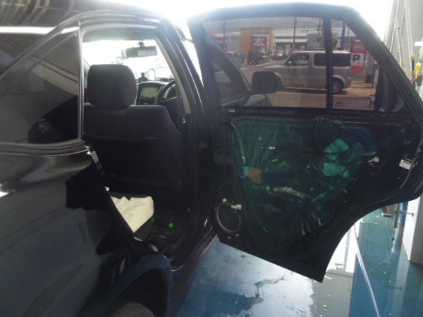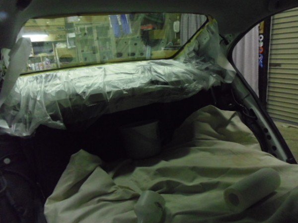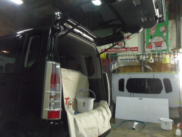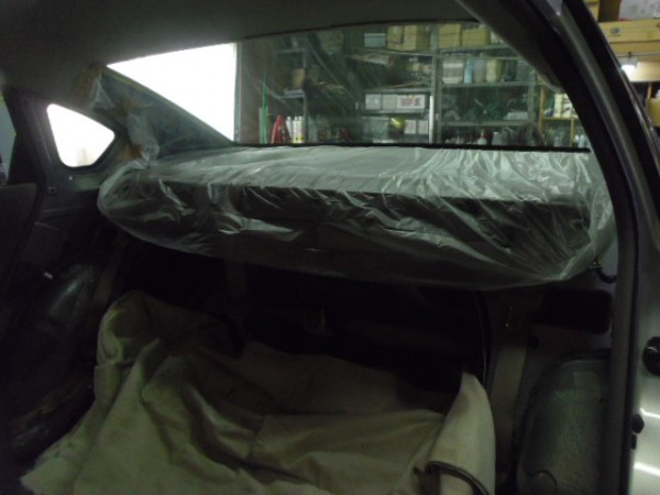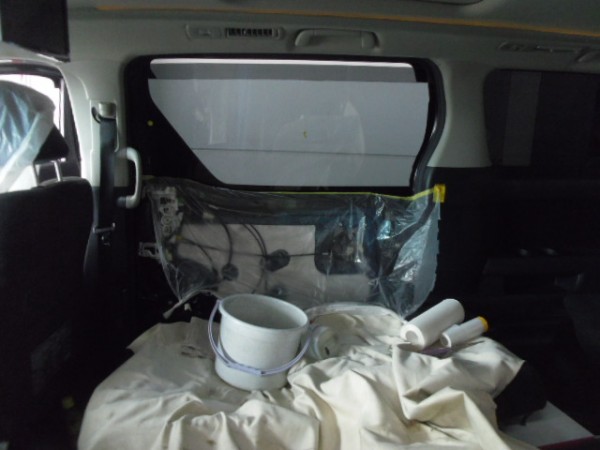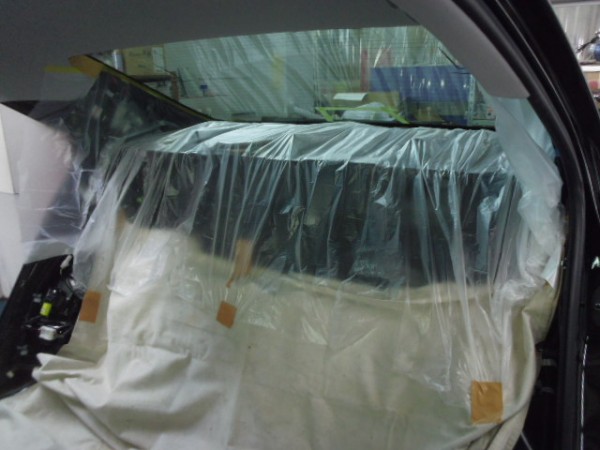 リアの内張りはお客様がご自身で外して来られたのでフィルムの貼り込みに即、取り掛かれます