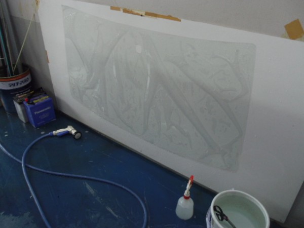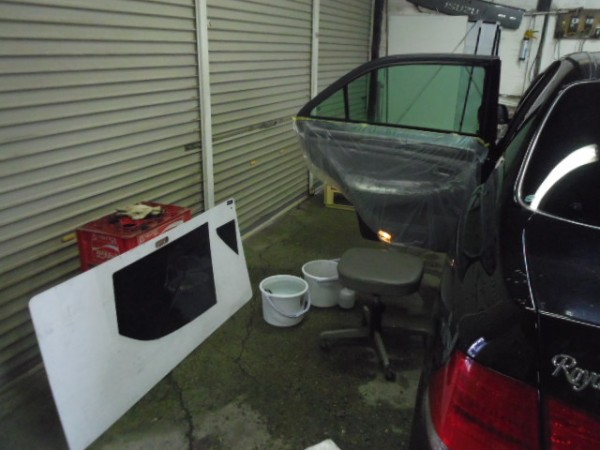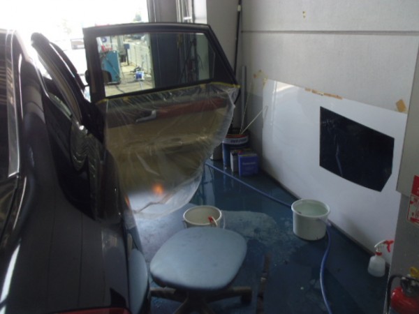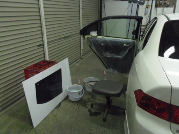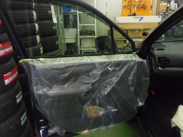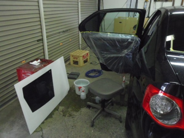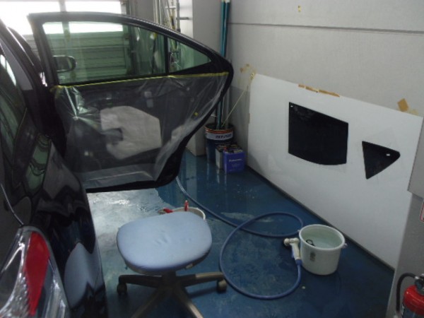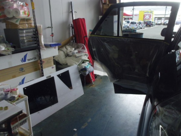昨日からの続き作業です 予定通りフィルム貼りの作業から入ります
