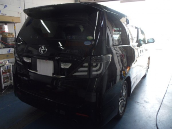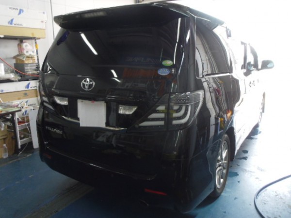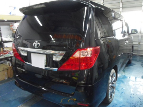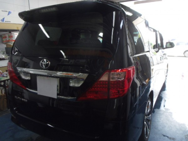 当日受けで20アルファードのリア全面に高断熱5%のフィルムを貼って行きます