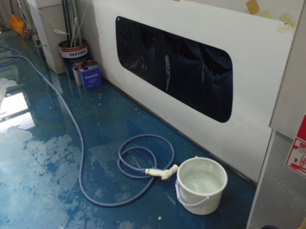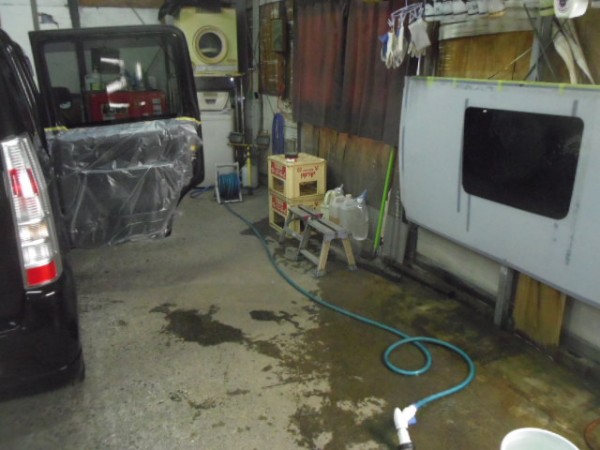 電装部品に水分が付着しないように養生をして準備しておきます