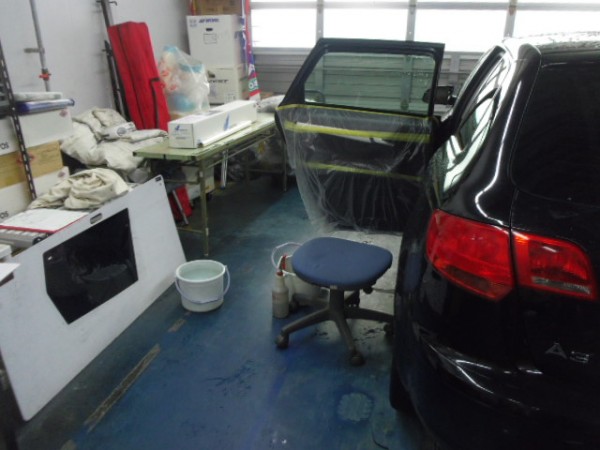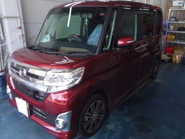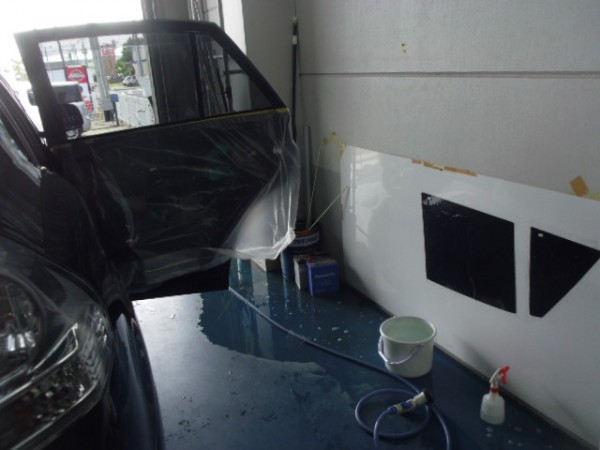 常連さんからの連絡でご自身で少し剥がしたみたいなので運転に支障が出ると危ないので量販店さんにお願いして場所を借りて作業する事にしました