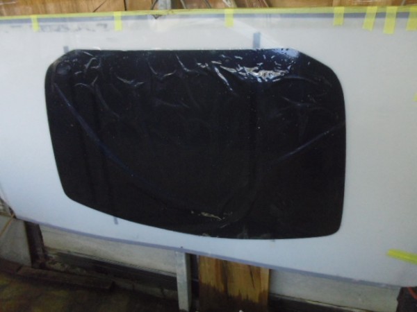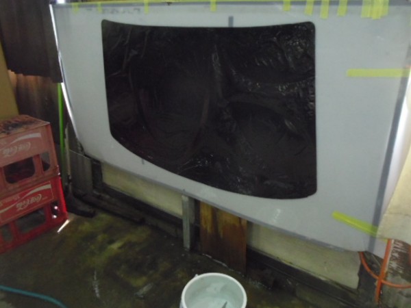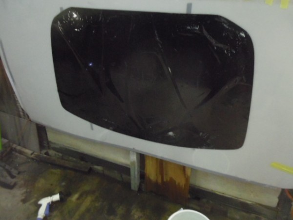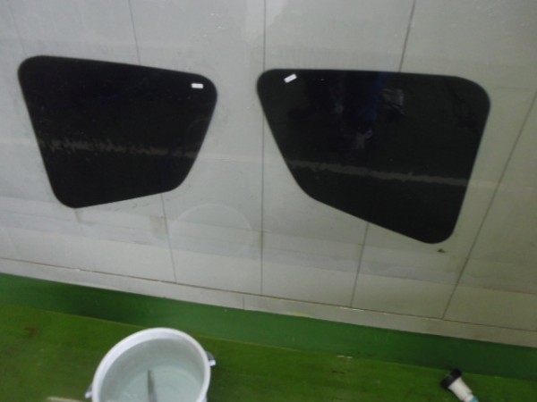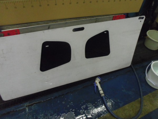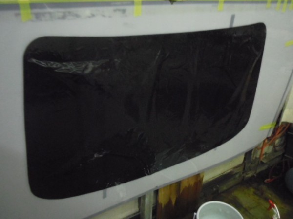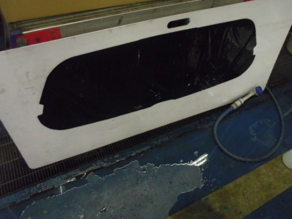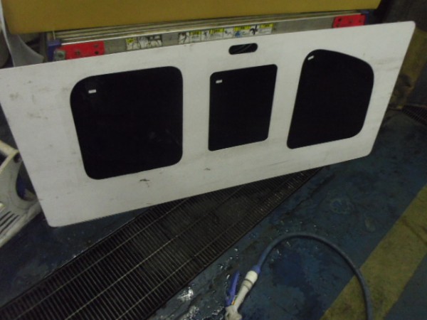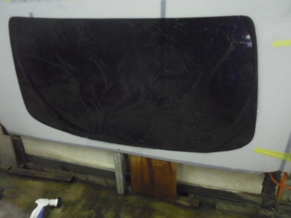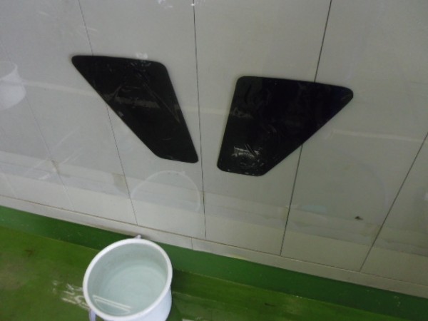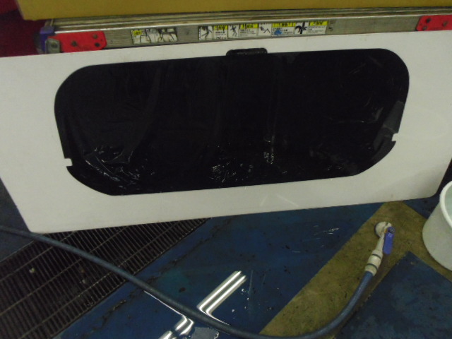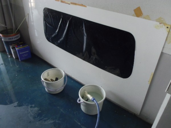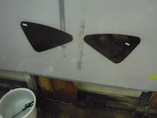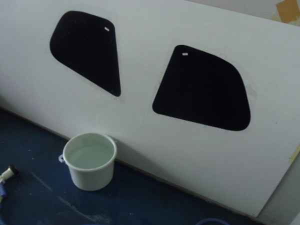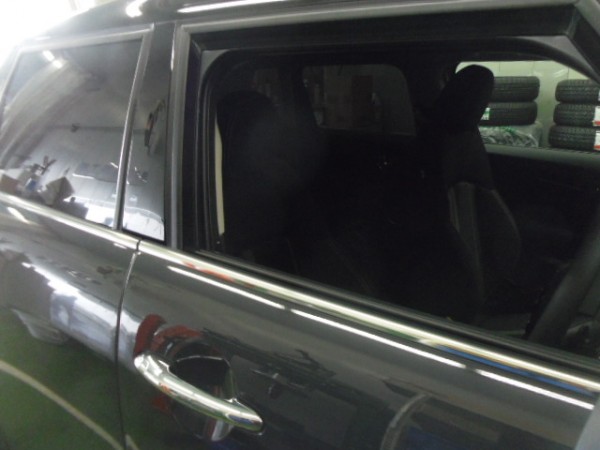 小窓のクォーターガラスも貼り終え、ドアにも貼って行きます