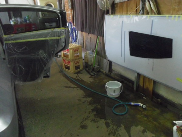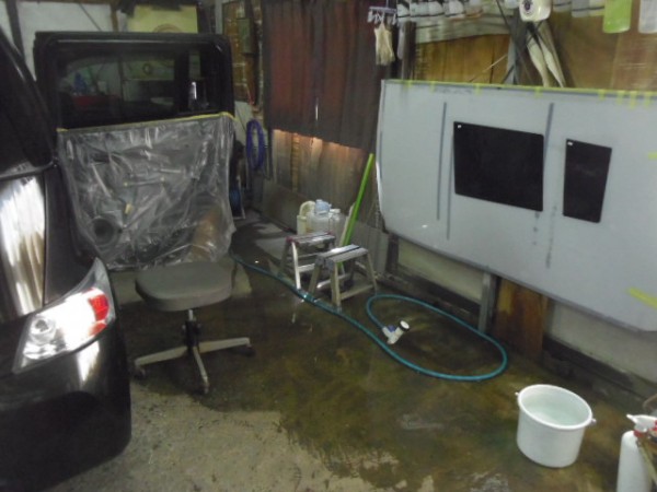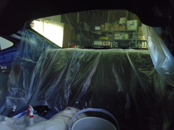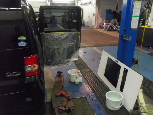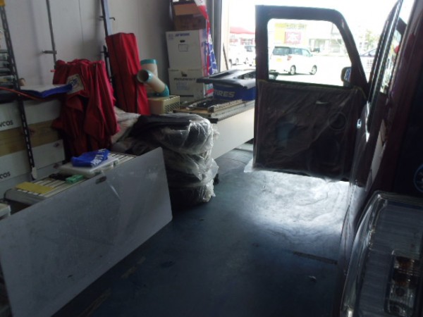 内張りを外した後、養生をして準備しておきます