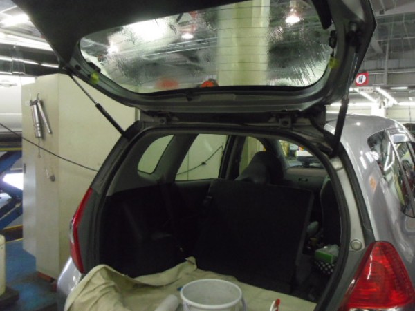 リアハッチから貼り込み