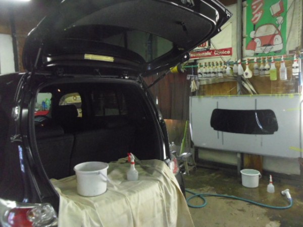 リアハッチから作業開始です