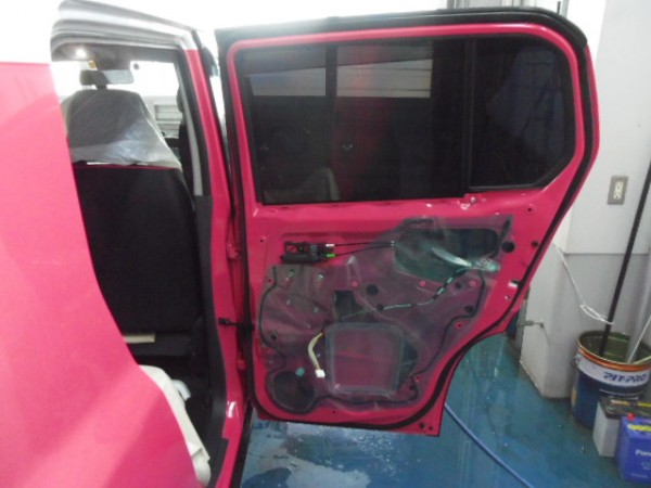 スライドドアは内張りを外して貼り込みます