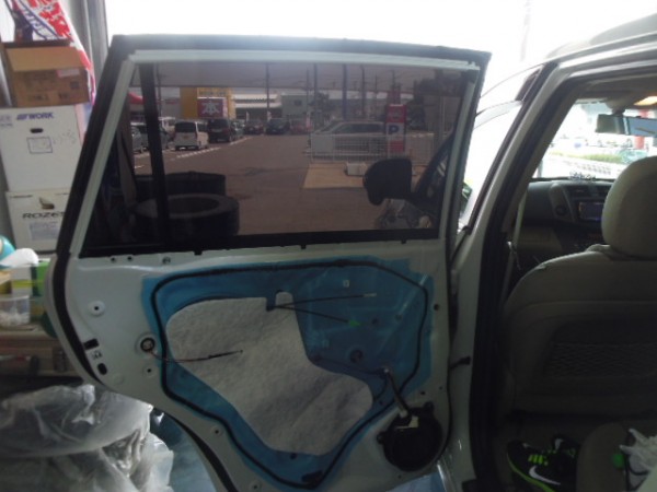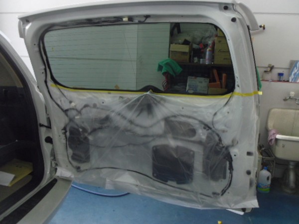 リアゲートも内張りを外して貼り込みます